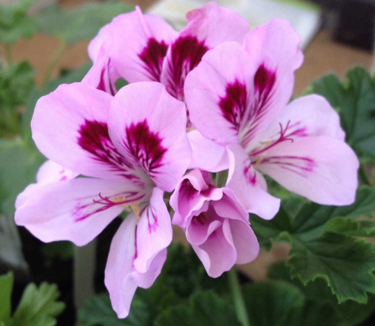 A very worth while Scented Leaf Pelargonium. It has a warm sweet scent on well cut leaves. The large blooms are mauve with dark purple feathering on upper petals and veining on lower and are well shaped. It makes an amazing specimen plant that flowers forever and gets better year after year.